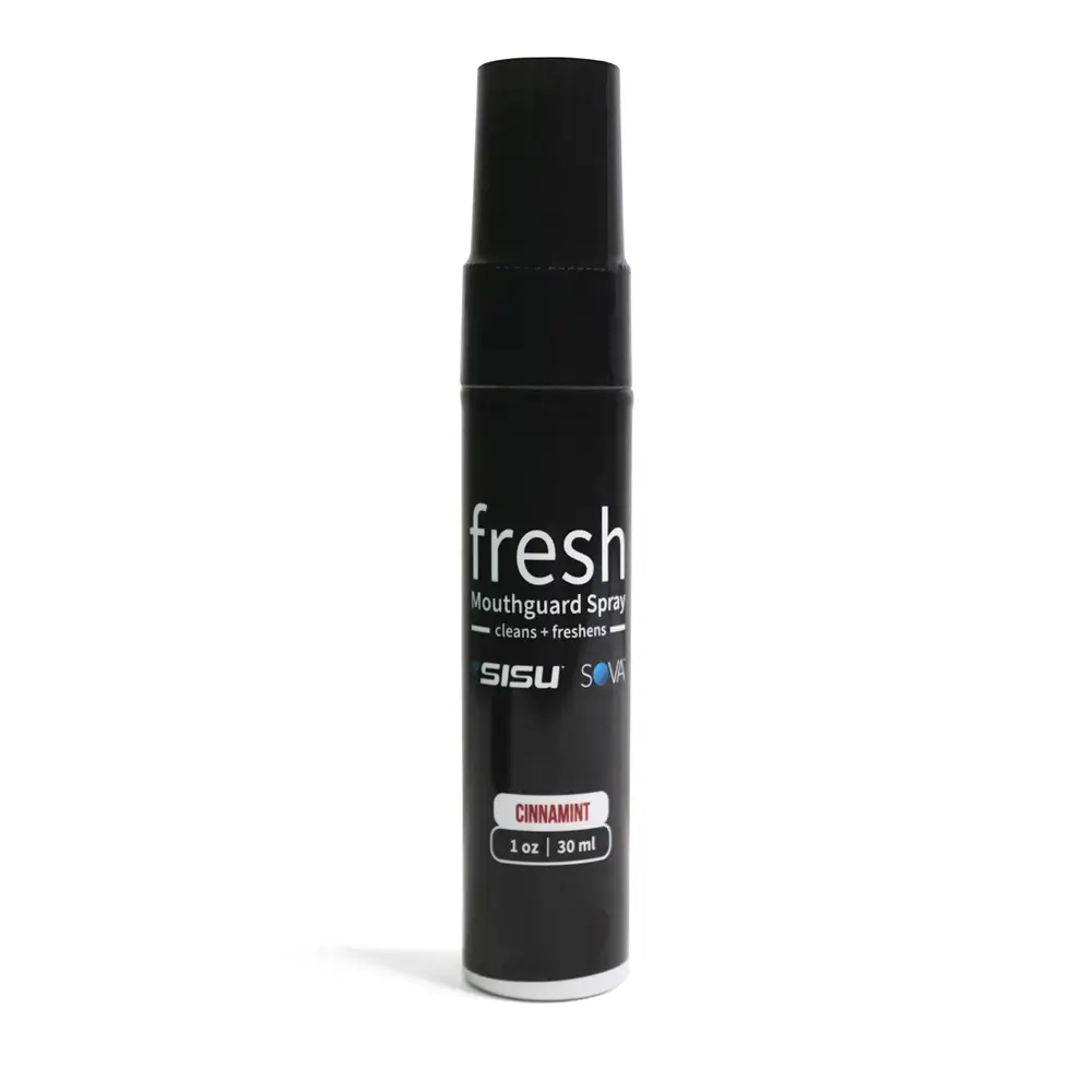 SISU® Mouthguards are the safest, thinnest, and most comfortable mouthguards on the planet. However, no mouthguard will freshen your breath. That’s why SISU FRESH Mouthguard Spray was invented! This rejuvenating cinnamon and mint flavored spray is applied directly to the mouthguard before use, leaving a taste as sweet as victory itself. To clean after use, rinse, spray, and store the mouthguard once it is dry.