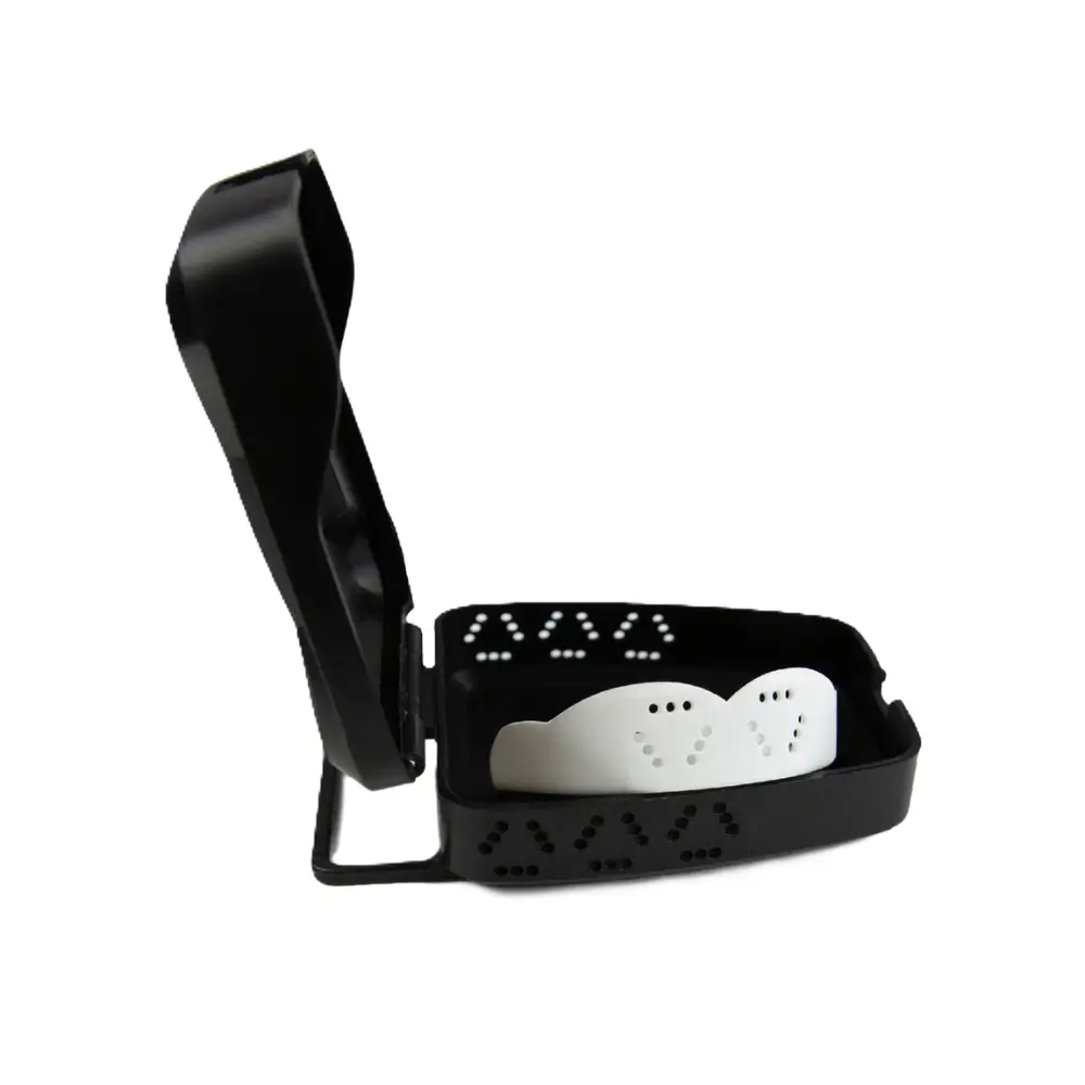 Protect your mouth guard with the lightweight and durable SISU Case. Made with a built in ventilation system, the SISU Case inhibits growth of bacteria during storage. The case also provides extra storage for personal items and is equipped with a carabiner handle for easy carrying. The SISU Case is perfect for Aero and Max Mouthguards, which are sold separately.