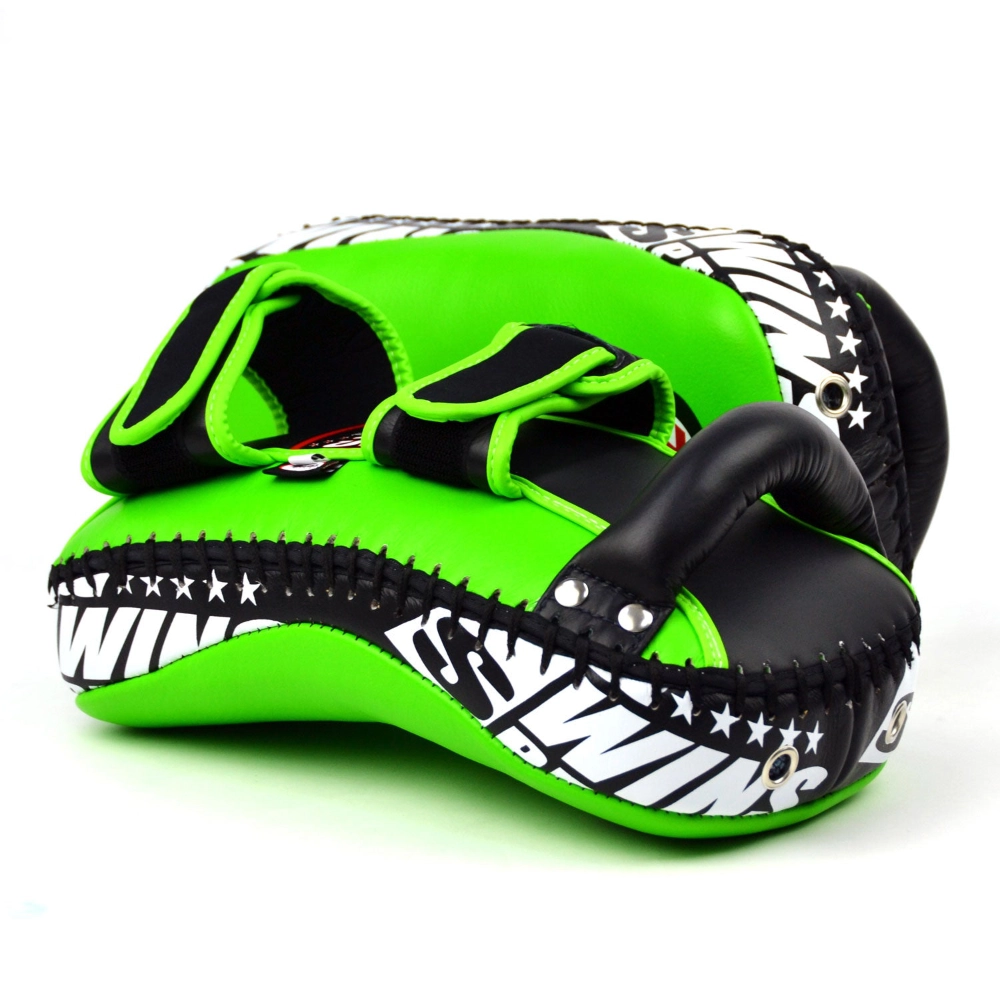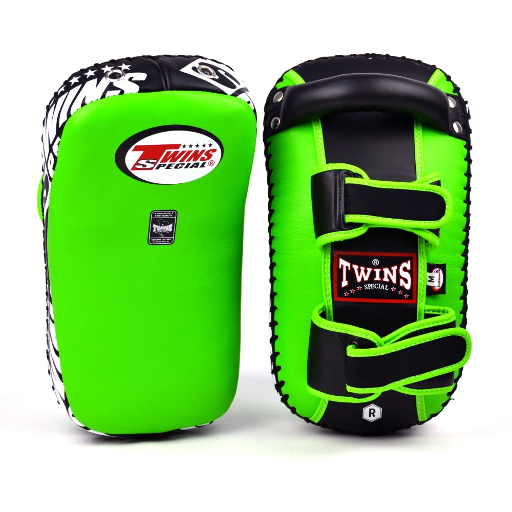 Twins KPL10 Green Black Curved Leather Thai Kick Pads